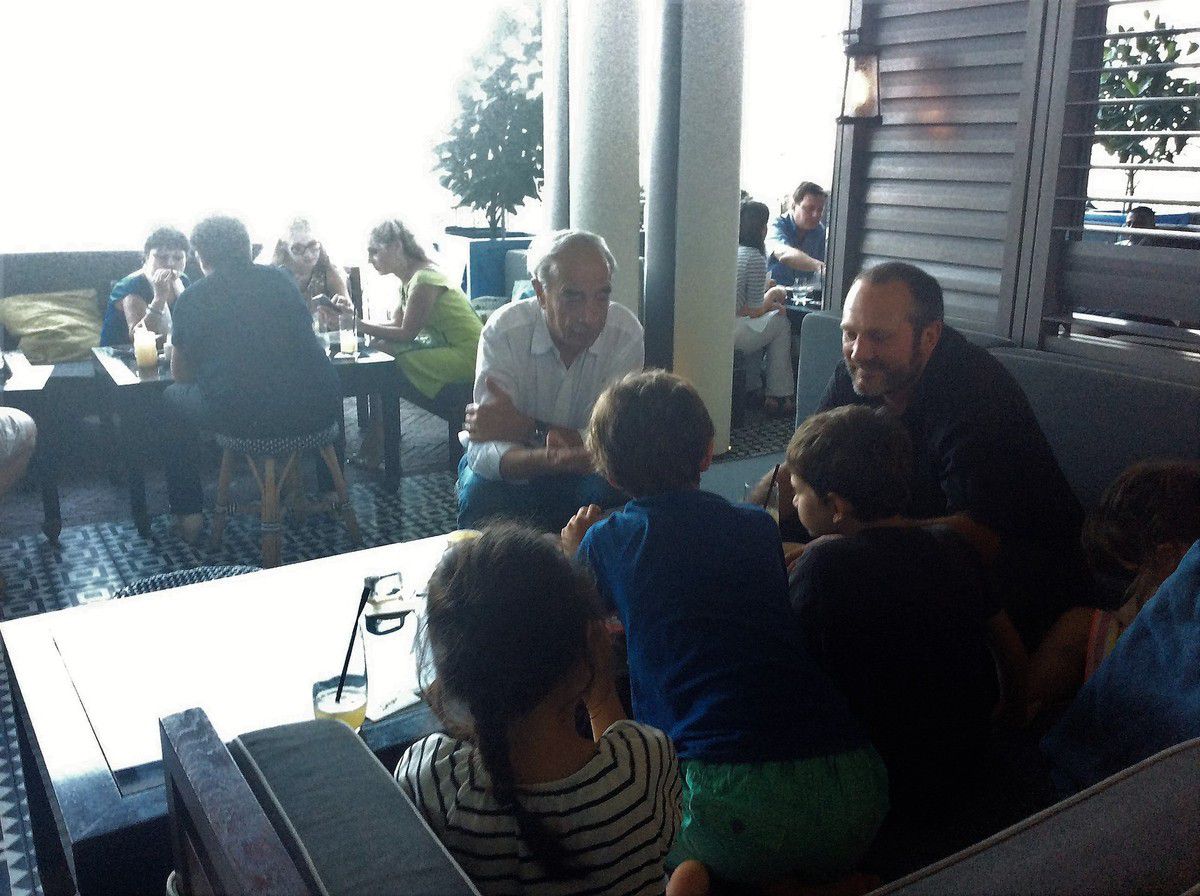 A la sortie de notre troisième musée du jour ce n'est pas fini !! Nous avons rendez-vous avec Marc, un ancien patient de Nicolas avec qui il était resté en contact et qui travaille régulièrement encore à Singapour après y avoir habité plusieurs années. Il nous a donné rendez-vous au Spago, un café au style « tenue de ville » perché tout en haut du Marina Bay Sands, bâtiment emblème de la ville.